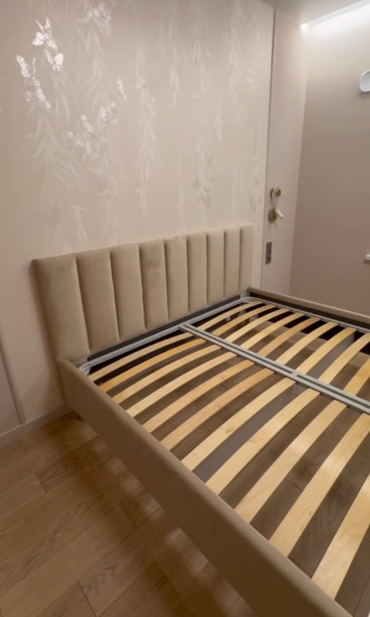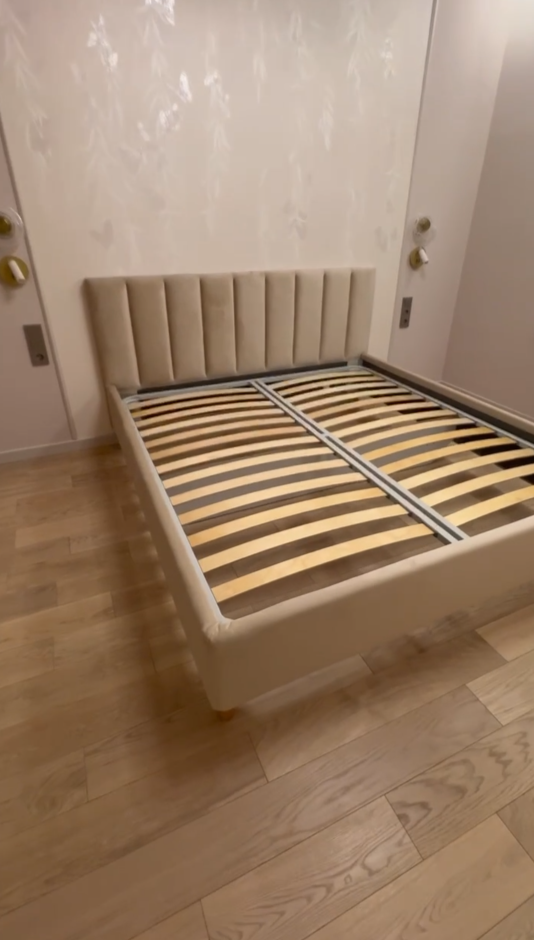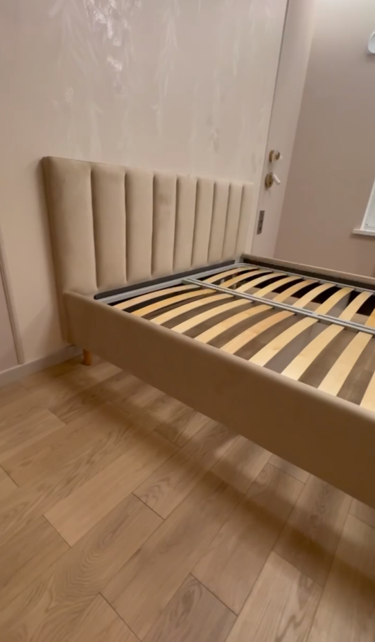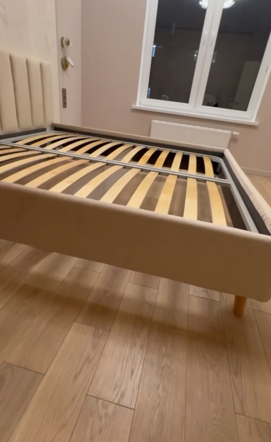 Прекрасная кровать. Нам очень нравится! По цвету и фактуре обивки могу сказать что дизайн стильный и лаконичный и что главное вне времени. Высота ножек как раз позволяет там убирать пыль роботу пылесосу.