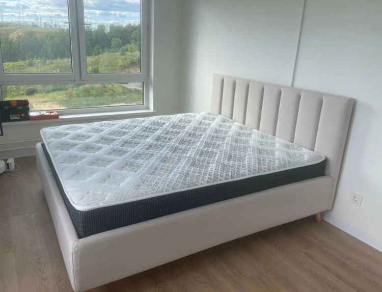 Прекрасная кровать. Нам очень нравится! По цвету и фактуре обивки могу сказать что дизайн стильный и лаконичный и что главное вне времени. Высота ножек как раз позволяет там убирать пыль роботу пылесосу.