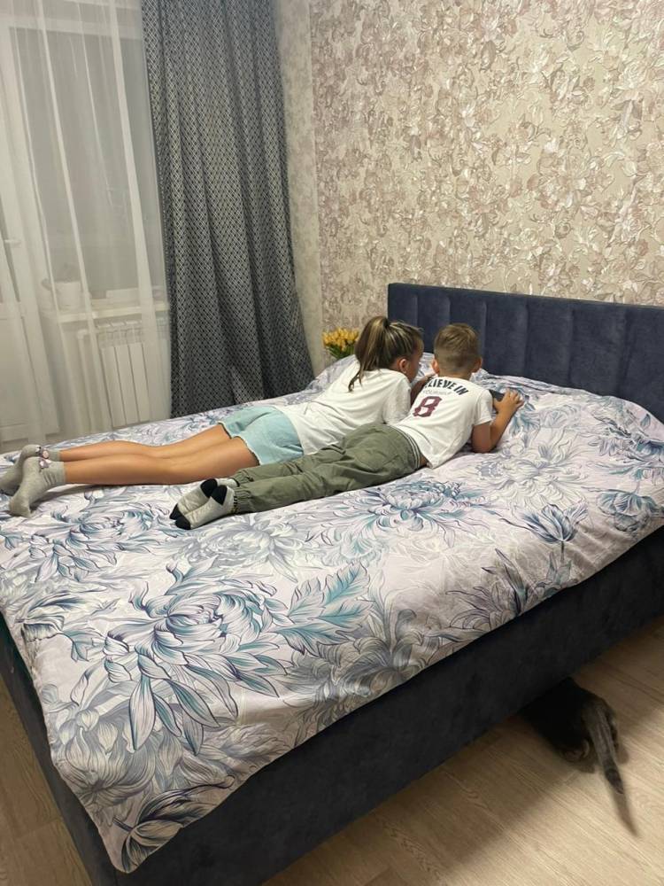 Взяли в синем цвете, как на картинке! Обожаю этот цвет, у меня даже унитаз синего цвета...)) Проблемы убрать под кроватью нет, достаточно места для швабры. Заказывали сразу с матрасом.