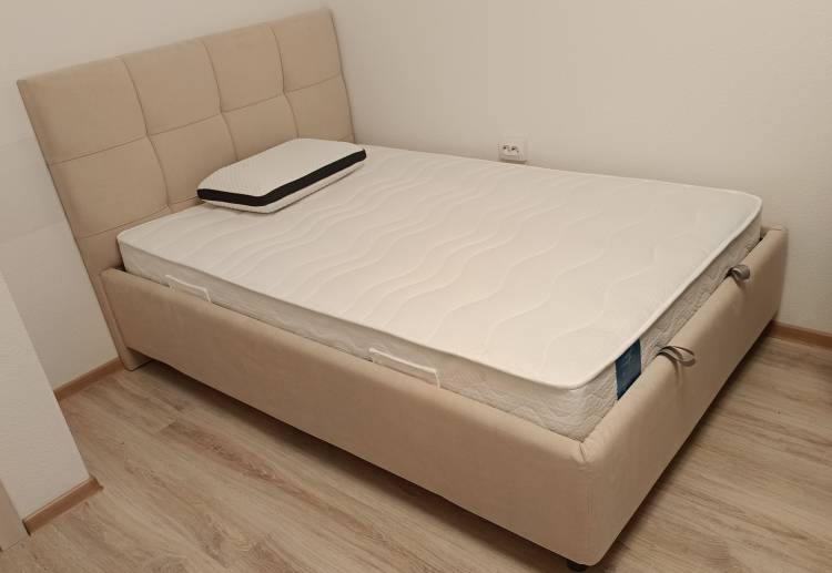 - Дополнительно можно заказать подъемный механизм и бельевой ящик (глубина ящика составляет 14 см), чтобы использовать место под кроватью для хранения. Дно бельевого ящика легко сдвигается для обеспечения уборки под кроватью.