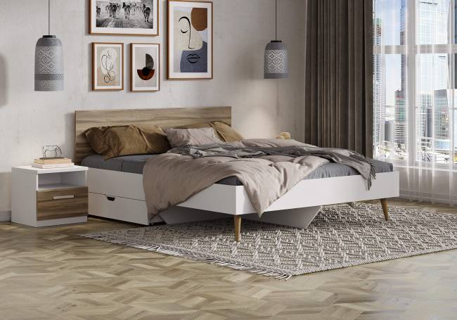 - Основание в виде настила из ЛДСП и усиленные царги позволяют кровати выдерживать повышенные нагрузки.