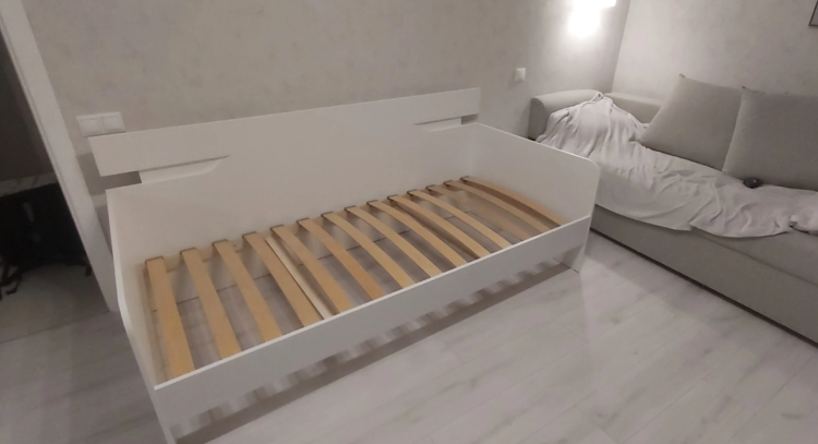 Кровать мы купили давно, а отзыв я решил написать только сейчас. Купили мы ее сыну около полу года назад. Брали через салон. На вид достатлчно простая, малогабаритная модель. В комнате вписалась идально. Много места не занимает. Брали с выкатным ящиком, по цене приемлимо. Основание у кровати ламелевое. Кстати при доставке на одной ламели был скол, но сотрудники составили акт и нам быстро ее заменили. Сейчас проблем нет никаких. Конструкция прочная, за пол года не расшаталась, не треснула. Так что советую к покупке.
