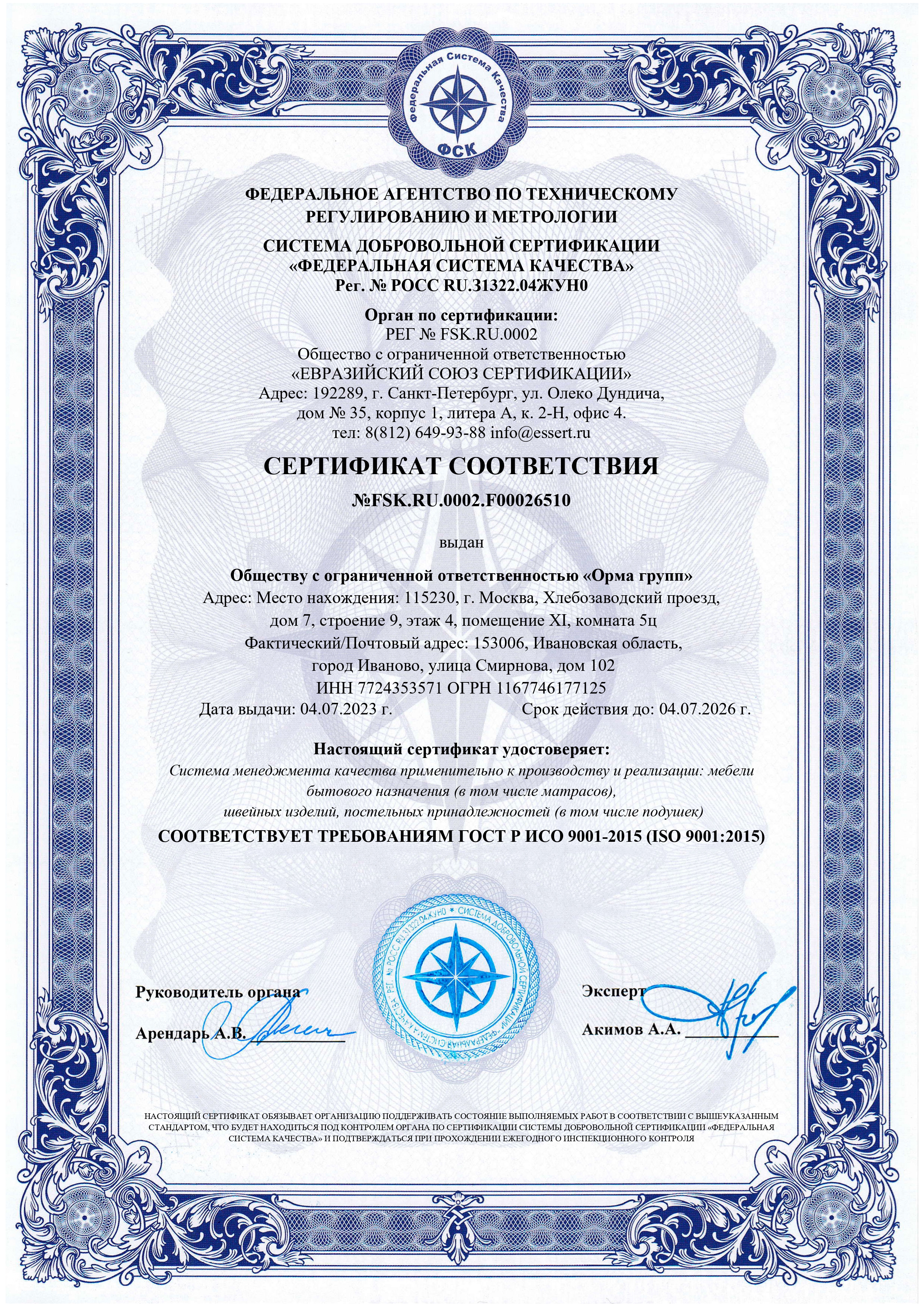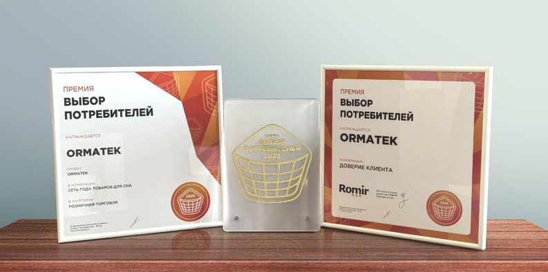 12 ноября 2025 года компания ORMATEK стала лауреатом престижной премии «Выбор потребителей» в номинациях «доверие клиента» и «сеть года товаров для сна» в категории «розничная торговля»!